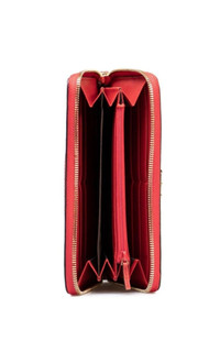 Gucci Sylvie leather zip around wallet. Red smooth leather Blue and red web stripe Metal chain and buckle 12 card slots and 3 bill compartments Zip coin pocket Zip around closure Dimensions Height: 4.5"/11.43 cm Width: 7.5"19.05 cm Depth: 1"/2.54 cm