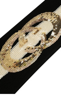 A black wool headband, contrasted by an ivory stripe with tonal sequins. The item is enhanced by the Interlocking G, presented on the front in gold sequins. Part of the House's eclectic vision, the headband has become a recognizable Gucci accessory. Composition: Wool 100% Made in Italy