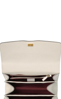 The Gucci collection is the pinnacle of Italian craftsmanship and attention to detail as seen in this leather Zumi shoulder bag. Adjustable shoulder strap Accordion details at sides Multiple interior compartments Internal zipped pocket Signature interlocking G HorsebitSilver and gold-tone hardware and a front flap with bar pin fastening. Composition: Leather 100% Depth: 2.8", Height: 6.3", Strap: 26.8", Width: 9.4" Made in Italy Color Whisper White
