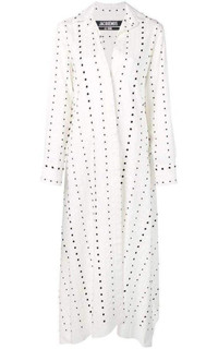 This Jacquemus Djellaba Maxi Dress features a V-neckline and maxi length hem. Allover polka dot print Cuffed sleeves Unlined Composition: 100% viscose Color: 3211A Black Polka Dots Slips on