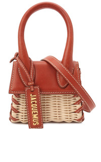 Leather and Rattan Chiquito Mini-Bag in Brown