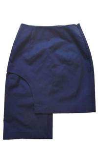 Blue striped cotton and wool side asymmetric detail skirt from Jacquemus. Measurements for FR34 Waist 24" Hips 35" Length: Shortest 17.5" Longest 22.5" Made in France