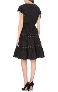 Lace Up Panel Black Cotton Dress