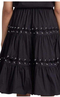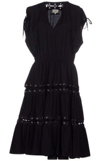 Jean Paul Gaultier cotton-blend dress. Slips on. V-neck, cap sleeves. Elasticated waistband. Lace-up detailing with silver-toned eyelets at skirt. Ruched panels at skirt. 78% cotton, 18% nylon, 4% elastane. Dry clean. True to size. Made in Italy.