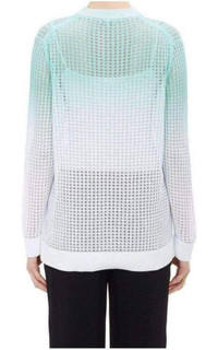 Kenzo light green ombré open-knit cotton-blend sweater. Rib-knit crewneck, cuffs and bottom. Fully fashioned sleeves. Light Green. Cotton/polyamide. Machine wash.