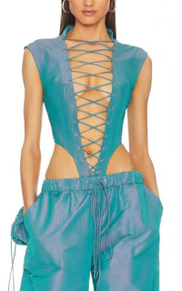 Utility Lace-Up Bodysuit Aqua