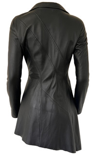 Embrace the bold, embrace the extraordinary, and make a statement with the Thierry Mugler black leather asymmetric closure runway dress. Experience the allure and power of this iconic design that defies conventions and elevates your personal style to new heights. This dress is a testament to Thierry Mugler's iconic fashion legacy, pushing boundaries and redefining elegance. The asymmetric closure adds a captivating touch, creating a dynamic and visually striking element that sets this dress apart from the rest. Shell 100% lamb leather Fully lines - 57% viscose 43% polyester Fits true to size Dry clean Made in France