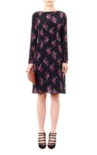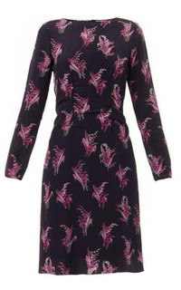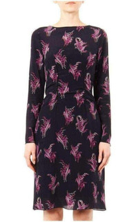 This beautiful dress is made entirely from silk and decorated all over with fuchsia blooms. Black, fuchsia-pink and grey floral-print Close-fitting boat neck, long sleeves, button-fastening cuffs Gathered side-seam front feature Centre-back concealed zip fastening Black silk slip lining 100% silk. Dry clean Made in France