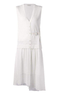 Crafted from a finespun wool and silk-blend, Nina Ricci's ivory dress is an effortlessly elegant piece. The skirt is made with diaphanous layers of silk-georgette and is partially lined for coverage. Ivory wool and silk-blend, ivory silk-georgette. Button fastenings along front. Fabric1: 86% wool, 14% silk; Fabric2: 100% silk. Dry clean.