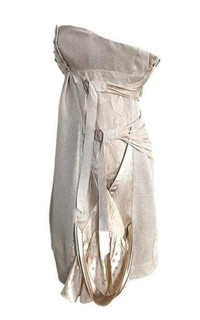 Strapless Color: Whisper Corset bust Back zip closure Material: 50% Silk, 50% wool Contrast: 100% Silk Lining:Viscose, polyester Lining : Polyester