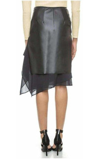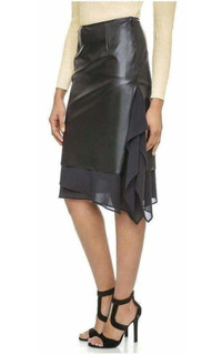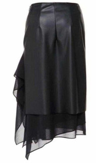 Black cotton-silk blend layered ruffled skirt from Cedric Charlier featuring a high waist, a side zip fastening, sheer panels and an asymmetric hem. Composition 1: Silk 14%, Cotton 86%. Composition 2: Polyester 55%. Polyurethane 45% Lining Composition Rayon 100%. Hand Wash. Made in Italy.