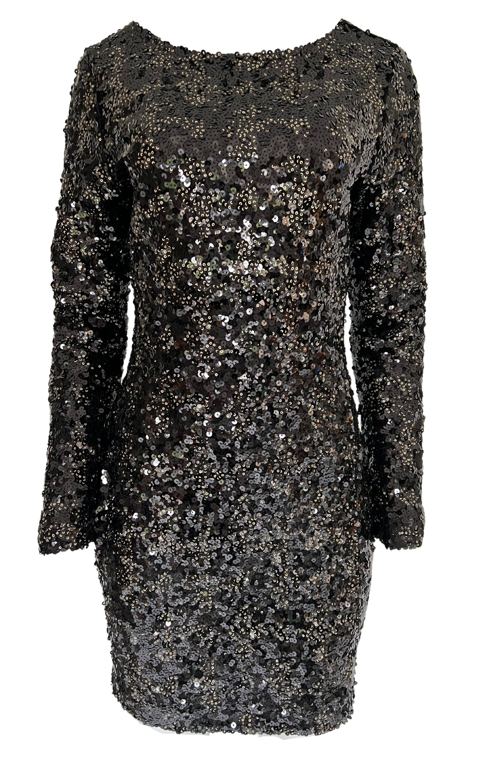 This BCBGMaxazria black sequins cocktail dress is a timeless and versatile piece that will make you feel confident and glamorous. It is a must-have for any fashion-conscious woman who wants to make a statement at her next special occasion. Fully lined Zipper at side Bust padding 100% polyester, lining 100% acetate Approx. 35" length from shoulder to hem Classic fit.