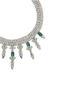 Beaming stones on a thick-chain strand create alluring shine in this statement-making necklace. Thick chain necklace. Assorted prong-set faceted stones with prong-set faceted stone-drop ends at center. Adjustable length with lobster-clasp fastening and signature icon hardware. Material: Copper alloy, Plastic, Polyester.