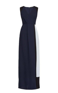 A timeless design in luxe crepe, this sleeveless jumpsuit features a faux wrap bodice embellished with a colorblocked pleated panel. Concealed center back zipper and hook-and-eye closures Slash pockets Fabric Self and Contrasts 1 - 3: 100% polyester satin back crepe; Lining: 100% polyester crepe de chine Machine wash Midweight, non-stretch fabric High rise Wide leg True to fit