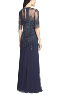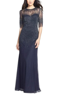 Stand out in Adrianna Papell's stunning gown, featuring placed sequins and beads on a dreamy mesh body. Elbow-length sleeves not only flatter, they also feel fashion forward! Exquisitely decorated throughout with tonal sequins embellishments High illusion neckline; Sweetheart bust with light padding Hidden back zipper closure; back keyhole hook-and-eye closure Elbow-length illusion sleeves Illusion panel at yoke and sleevesLined L:ined Polyester; lining: polyester Mesh-Nylon, Spandex. Color: blue