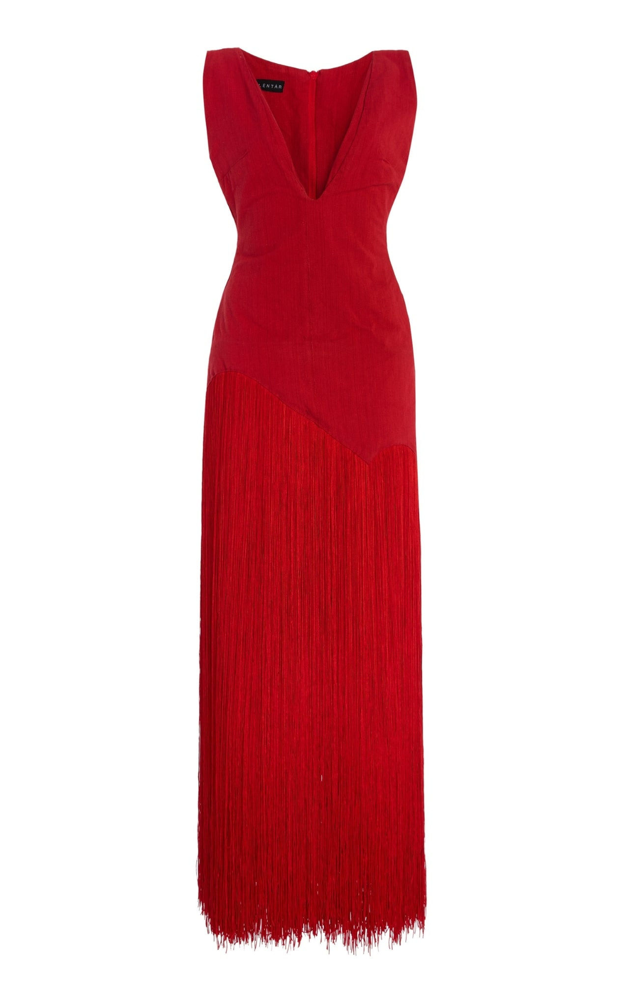 This sleeveless and backless gown fits to the body like a second skin and features a ruched wrapped sash around the hips. Turtleneck styling and gold-tone metal waist accent. Heavyweight slinky jersey fabric with back cut-out Zip fastening along back Designer color: Tangerine Partially lined Composition: 75% Acetate, 20% Polyamide, 5% Elastane Dry clean only Made in Colombia