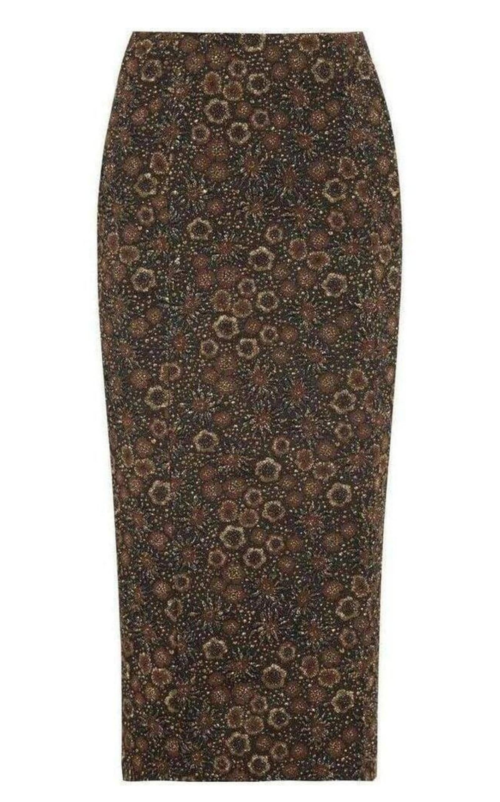 FINAL SALE Rochas' metallic style is cut from floral-brocade and crafted in Italy. Brown, gold and black floral-brocade Hem slit, fully lined Zip fastening along side 59% polyester, 35% polyamide, 6% elastane; lining: 58% rayon, 42% elastane Fits true to size, take your normal size Midi-length, sits at the waist Mid-weight, slightly stretchy fabric Dry clean Waist: 28" Made in Italy