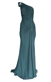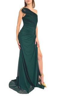 Gilded Waves Green Gown One-shoulder design for an effortlessly chic silhouette Sculpted detailing that accentuates your curves Full-length hem Partially lined The slim-fit silhouette is designed to flatter, with a concealed zip fastening ensuring a seamless finish. Composition: Polyester Color: Green Care Instructions: Dry clean only Have Questions about us, read our FAQ