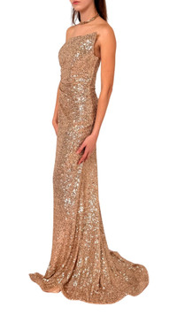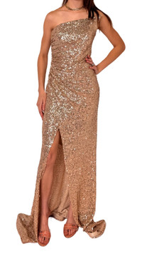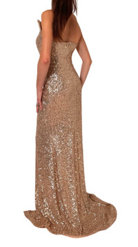 Gold Sequin Asymmetric Bustier Cocktail Prom Dress