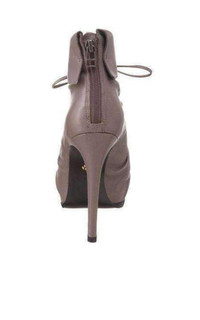 The Asas by Pour la Victoire is a round toe leather lace up bootie with ruched detailing at front. Heel Height: 4.75" Platform Height: 1" Shaft Height: 5.5" Leather Upper Sole: Leather NOTE: These do not come with the original shoe box