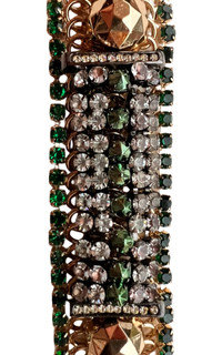 Bold yet refined, the Iosselliani Dirty Crystal Bracelet embodies the brand’s distinctive fusion of vintage glamour and contemporary edge. Crafted in Italy from gold-plated brass , this striking piece features emerald-green fused stones that shimmer against the metal’s rich tone. The design showcases a slide-bar clasp for a secure fit and a sculptural 3cm width that makes a strong statement on the wrist. Sophisticated and artfully detailed, this bracelet exemplifies Iosselliani’s signature craftsmanship , blending Italian artistry with modern elegance. Key details: • Gold-plated brass construction • Green fused crystal stones • Slide-bar clasp fastening • Width: 1.25" / 3 cm • Length: 6.5" / 16.5 cm • Color: Emerald • Comes with original box • Made in Italy Composition: • Gold-Plated Brass, Green Fused Stones Authenticity & care: Brand new and 100% authentic Iosselliani. Polish gently with a soft cloth; avoid water or chemicals. Why Shop at Runway Catalog? At Runway Catalog , we guarantee 100% authentic luxury items at unbeatable prices—often up to 80% off retail. Enjoy expertly curated collections, trusted authentication, and a personalized shopping experience. Have Questions? Visit our FAQ page for details on shipping, returns, and authenticity guarantees.