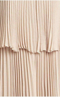 A stunning dress with bohemian charm perfect for a walk in the park or a summertime wedding. V-neck. Sleeveless. Tiered bodice overlay. Scoop back. Modified strappy racer back with ring accent. Pullover style. Shell: Polyester. Lining : polyester. Length: 57.5" (Shoulder to hem).