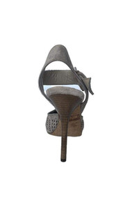 Laser cutout effet Buckling strap closure Round toeline Soft Leather Leather lining Leather sole Heel: 4" Made in Italy Note: floor model shoes. The pair does not come with the original box