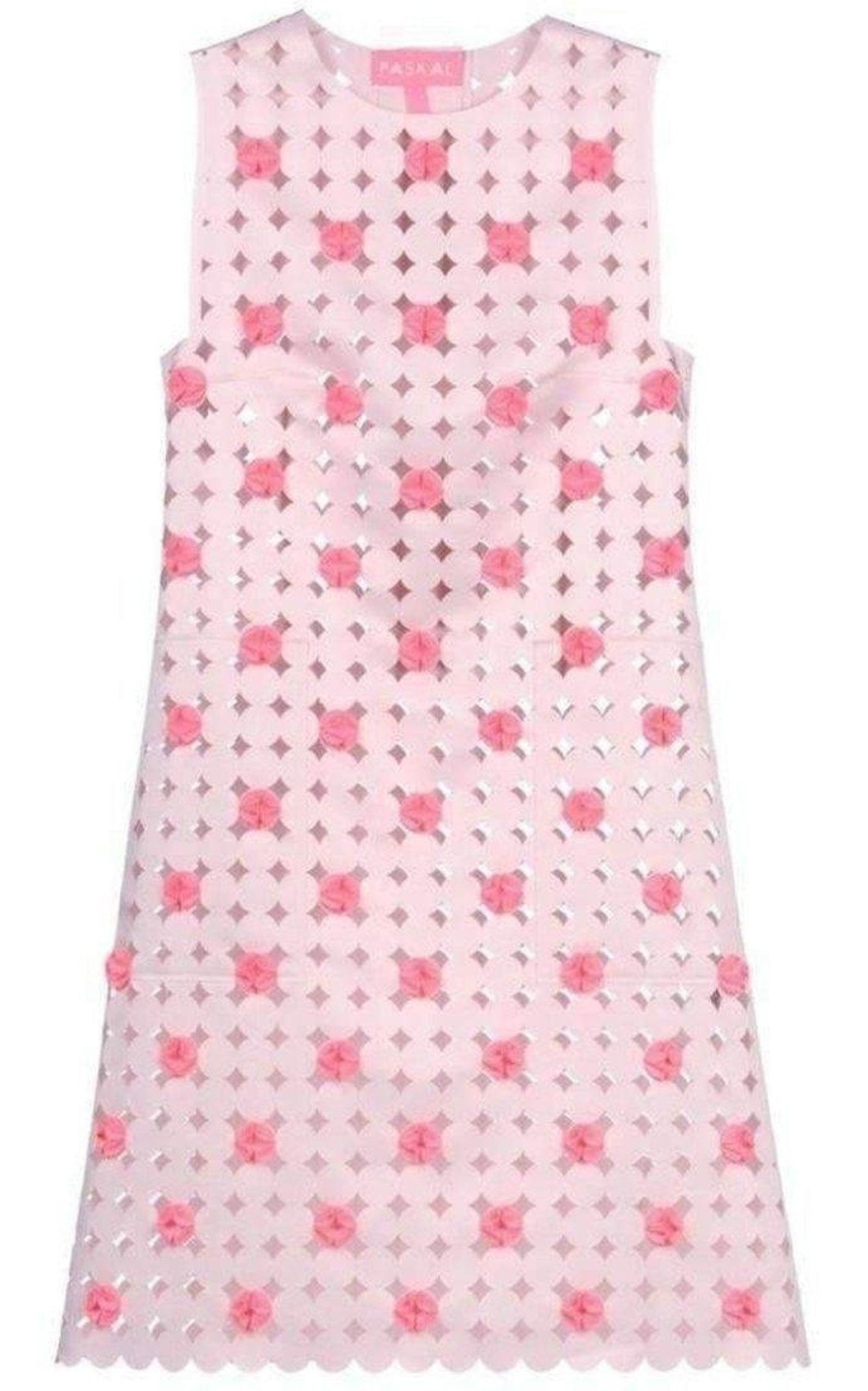 Tube dress Round collar Sleeveless Contrasting applications Unlined Rear closure Button closing Composition: 100% Polyester