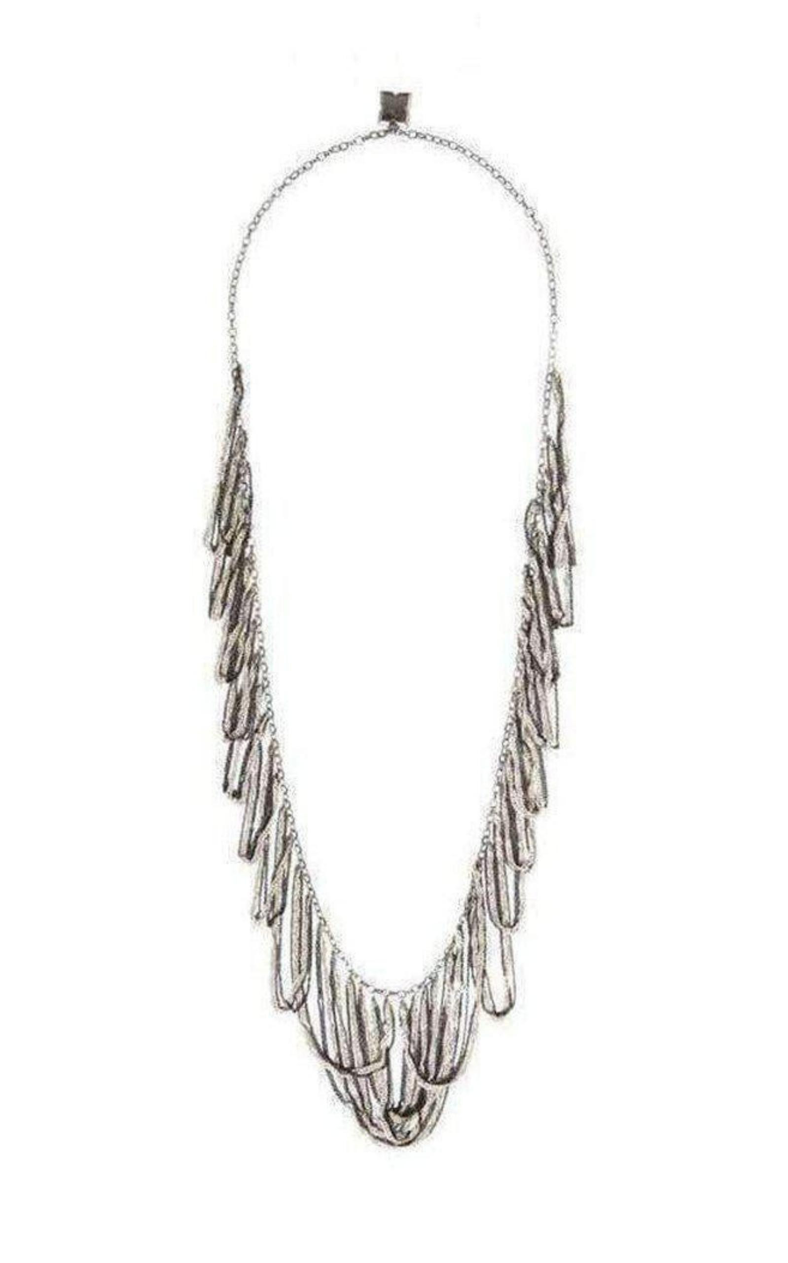 Chain necklace. Looped chain-fringe trim. Multi-toned finish. Adjustable length with lobster-clasp fastening and icon hardware. Material: Steel, Zinc.