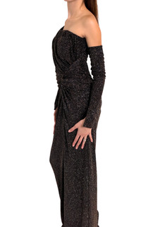 Gilded Waves Green Gown One-shoulder design for an effortlessly chic silhouette Sculpted detailing that accentuates your curves Full-length hem Partially lined The slim-fit silhouette is designed to flatter, with a concealed zip fastening ensuring a seamless finish. Composition: Polyester Color: Green Care Instructions: Dry clean only Have Questions about us, read our FAQ