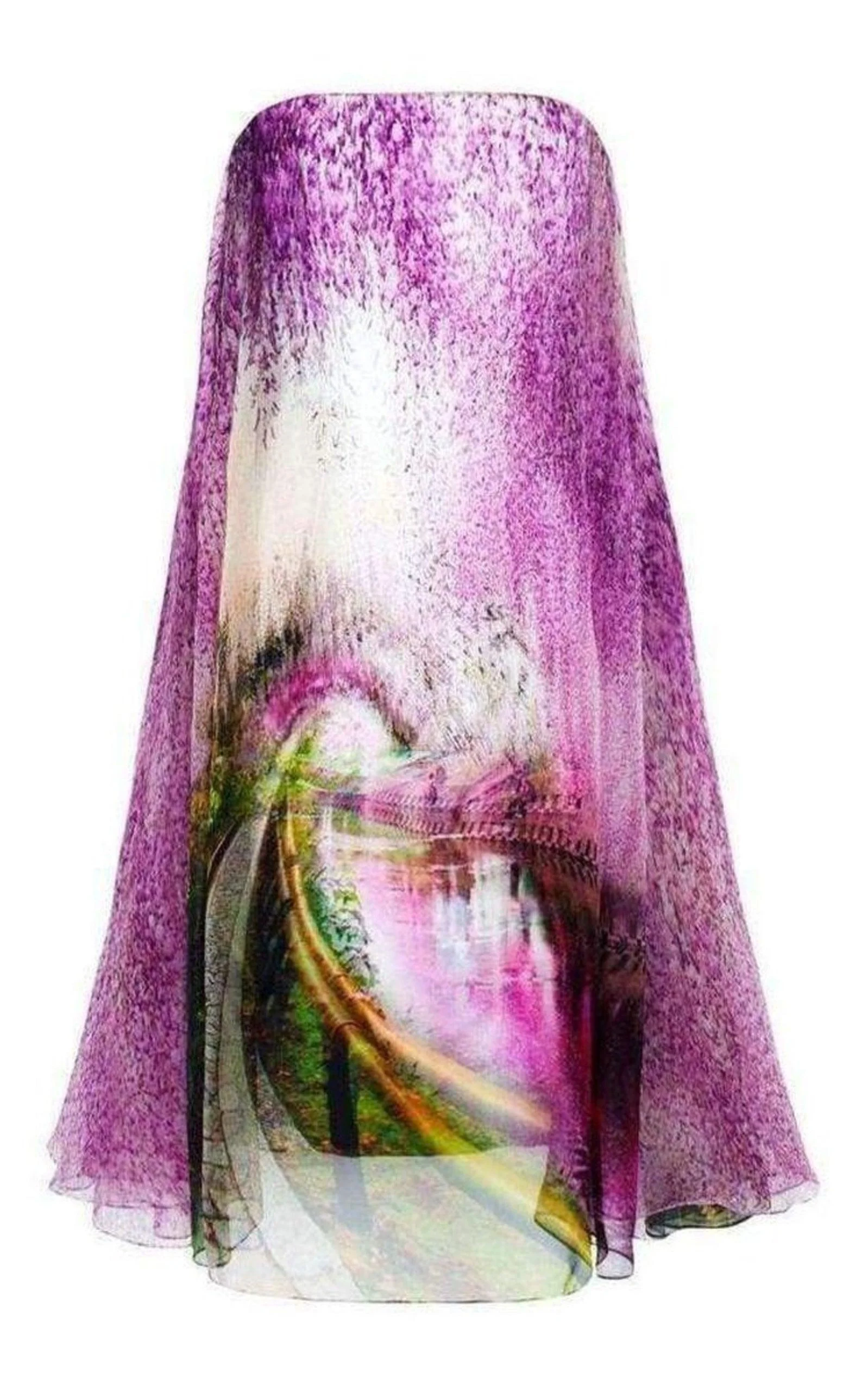 This strapless evening dress from Mary Katrantzou features a form-fitting sheath silhouette with a printed organza trapeze-style overlay. Back zip. 100% polyester body with 100% silk overlay. Fully lined. Color: Underwood Made in UK UK 8 Bust 31-32" Waist 26" Hips 38-39" Length 35" UK 10 Bust 32-33" Waist 27" Hips 39-40" Length 35"