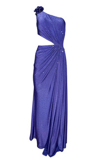 Step into the spotlight with this breathtaking Rhinestone Embellished Blue Ombre Gown, perfect for prom or as a statement piece for a wedding guest ensemble. This dress is a harmonious blend of elegance and allure, designed to captivate. A dazzling array of rhinestones graces the bodice and the top of the bust, creating a sparkling focal point that catches the light with every movement. Thoughtfully designed to enhance your silhouette, the ruched bodice offers a flattering fit while adding a touch of texture and sophistication. A cascading ombre skirt transitions seamlessly from one enchanting hue to another, offering fluidity and a sense of ethereal beauty. Elegant faux sleeves provide a delicate, modern touch, enhancing the overall aesthetic without sacrificing comfort. High front slit Rhinestone embellishment at bust and side Back zipper closure 100% Polyester Have Questions about us, read our FAQ