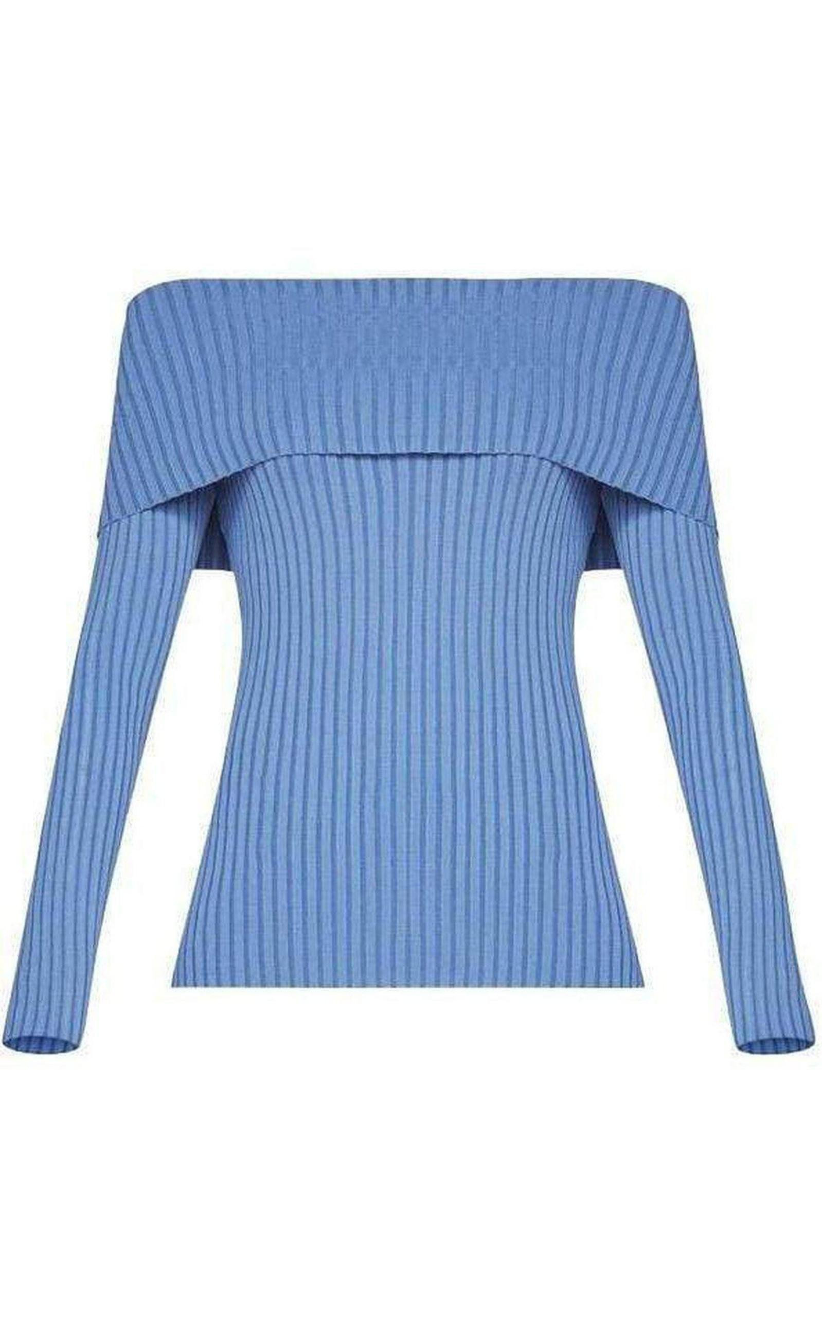 Crafted from a stretch ribbed knit, this long-sleeve sweater is designed a shoulder-baring fold for on-trend styling from season to season. Pullover Fabric: 86% rayon, 13% nylon, 1% spandex Washable Mid-weight, stretch knit fabric True to fit
