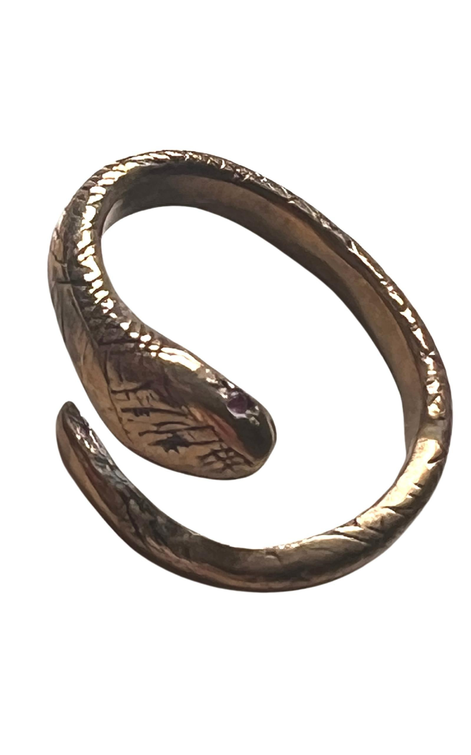 Emerald Snake Ring Bronze Adjustable J Dauphin J DAUPHIN "Gypsy Wisdom" Made in Bronze. Hand made in Los Angeles One size ring, Adjustable between Us Size 5-8 Material: Bronze Stone: Ruby