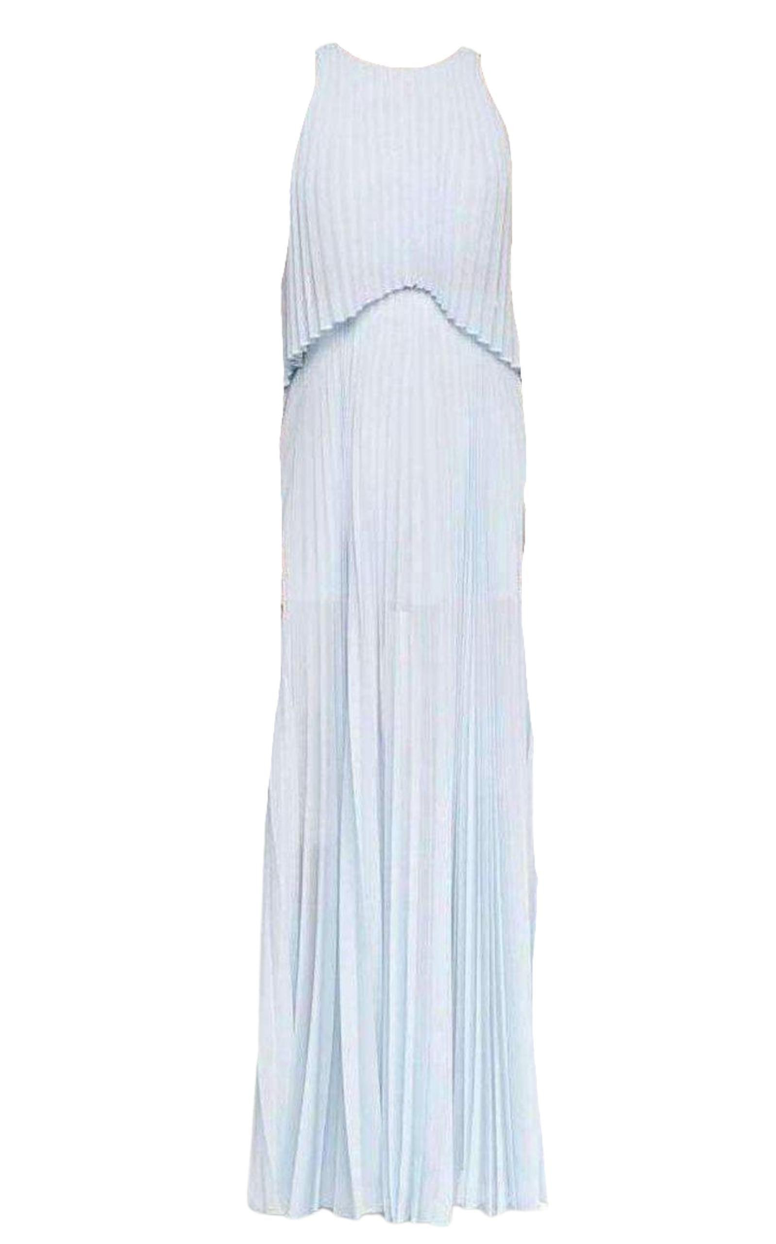 This ravishing gown captures the sophistication of well-executed pleating combined with a classically feminine silhouette. Scoop neckline. Sleeveless. Asymmetrical overlay at yoke. Allover pleating. A-line skirt with floor-length hemline. Center back zipper with hook-and-eye closure. Self: Polyester georgette. Lining: Polyester, Spandex. Machine Wash.