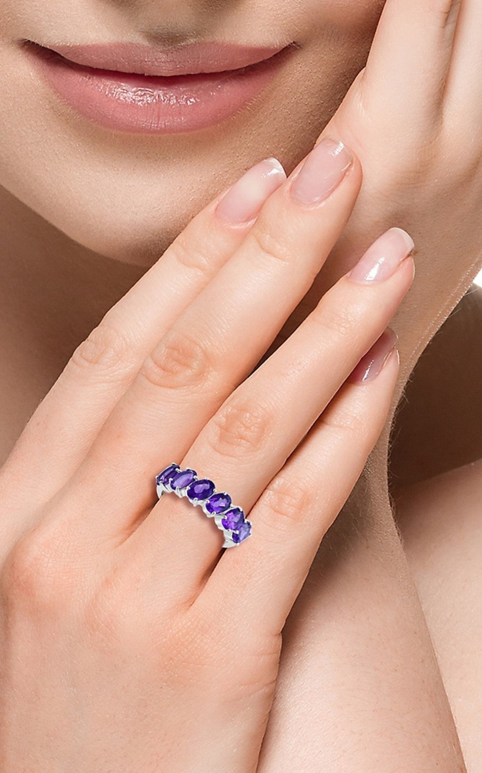 This remarkable sterling silver ring features six amethysts that cast an inspiring glow. Amethyst Sterling Silver DIMENSIONS Width: approximately 0.23"/0.6 cm Made in the USA