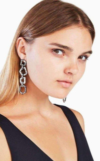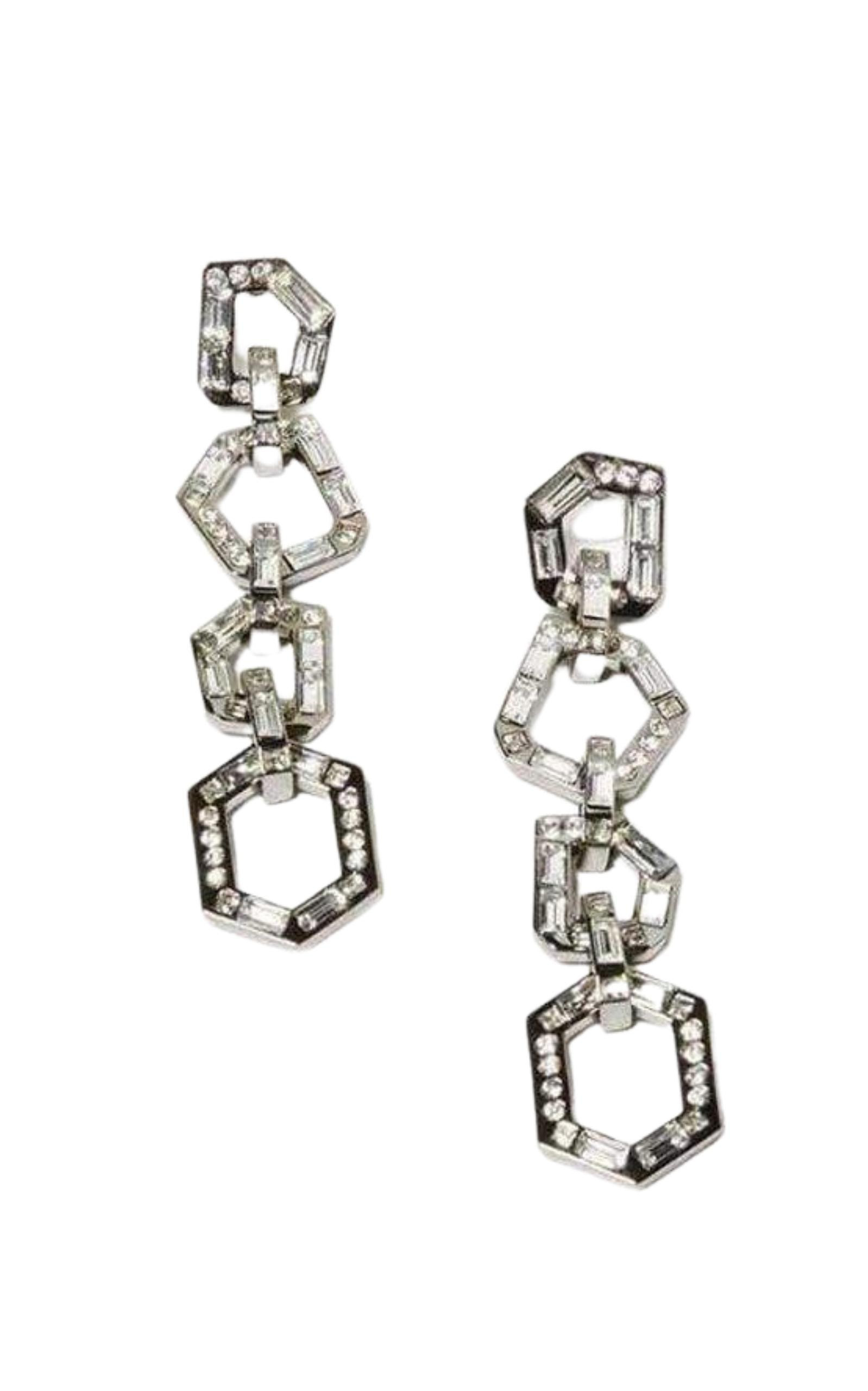 This high-shine pair is crafted from plated zinc and embellished with elegant glass stones to complete any evening ensemble. Post-back fastening Materials: 70% zinc, 25% glass, 5% surgical steel 2.25” in length
