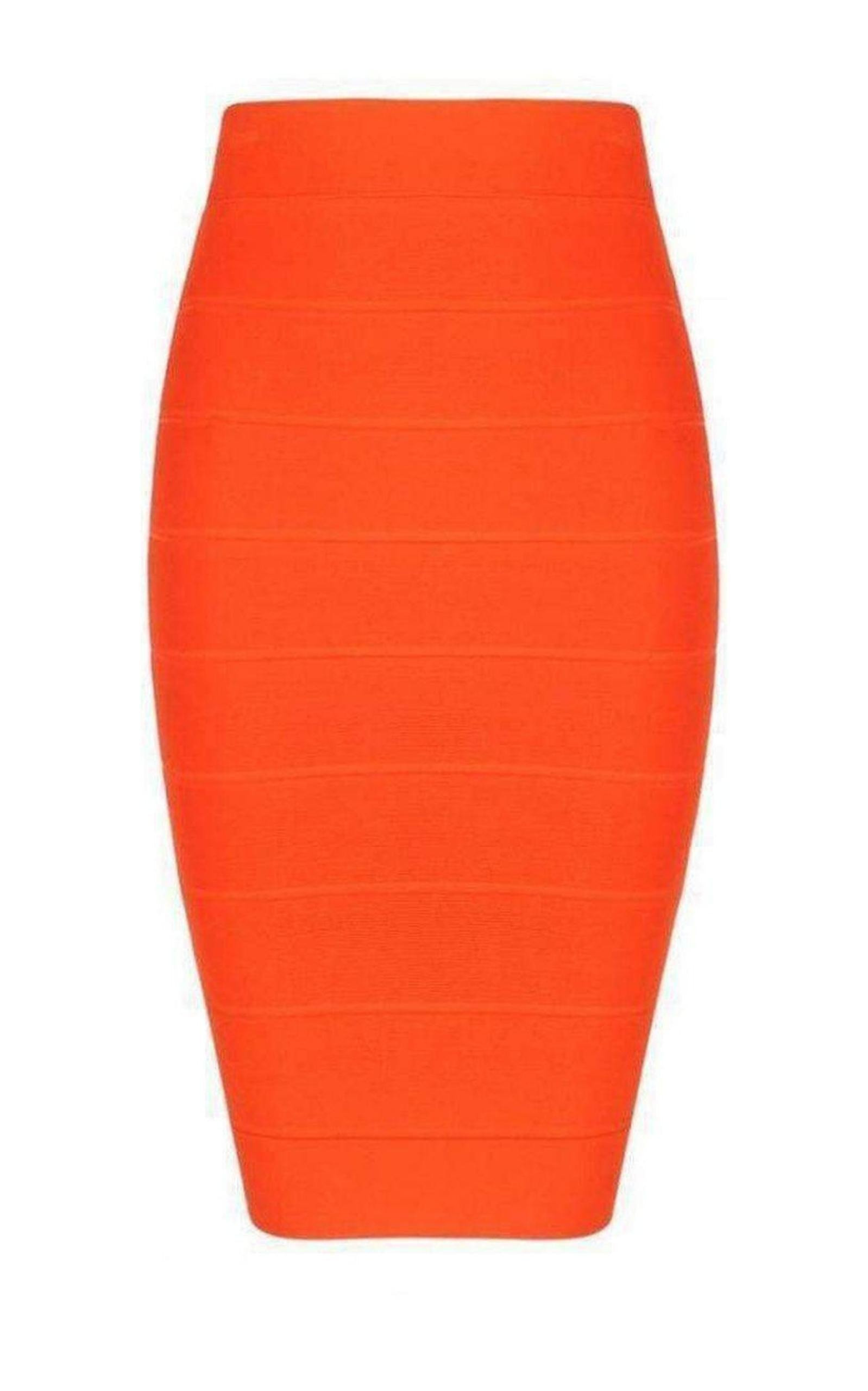 This bodycon bandage skirt is a must-have for confident, figure-flattering style. Pull-on Fabric Self: 86% rayon, 13% nylon, 1% spandex Machine Wash Measures approximately 20.25" from waistband to hem. Midweight, stretch fabric Elasticized waistband Above-the-knee hemline Bodycon Color: Tangier
