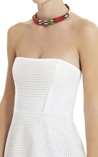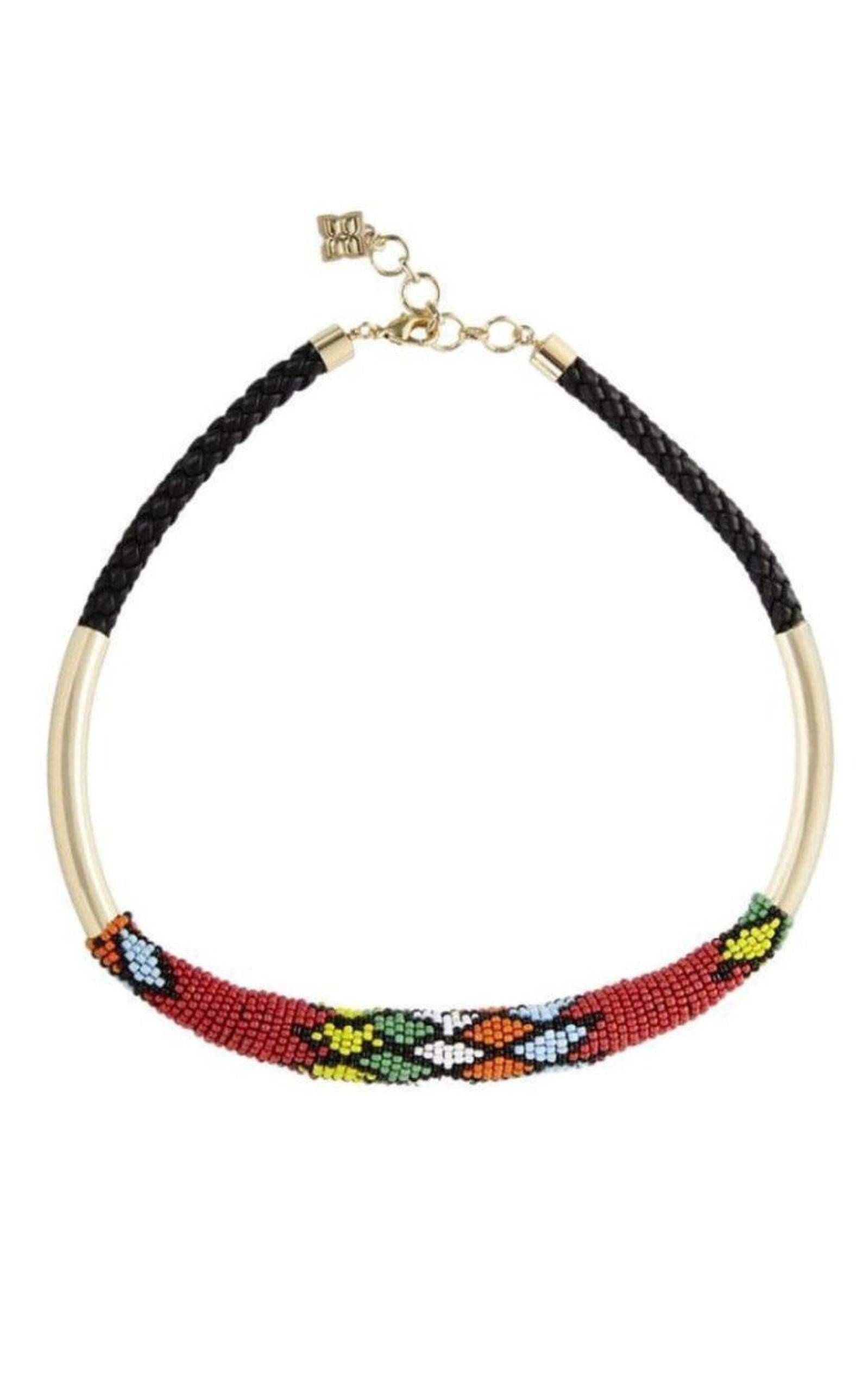 Metal necklace. Hardware-capped ends. Wire-wrapped detailing. Tribal seed bead embellishment at front. Adjustable lobster-clasp fastening. Gold-tone plated. Material: Glass beads, Copper, Faux leather, Cotton cord, Zinc alloy .