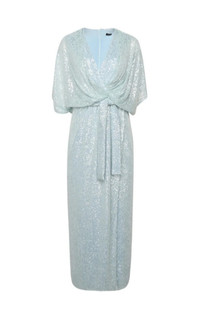 Kilton Fitted Column Dress with Micro Sequin Shimmer Radiate glamour in the Kilton fitted column dress, crafted from a luxurious elastic fabric that sculpts the figure with elegance. The floor-skimming silhouette features a deep V-neckline, short dolman sleeves, and a fluid draped overlayer that gathers into a chic front knot. A removable self-tie belt cinches the waist for a tailored finish, while the front slit adds graceful movement with every step. Key Features & Benefits Figure-sculpting elastic fabric Deep V-neckline & dolman sleeves Draped overlayer with front knot Front slit Removable self-tie belt Micro sequin embellishment Concealed back zip Made in Italy Product Description Designed for evening soirees, black-tie events, and special celebrations, this midi dress marries sleek structure with fluid draping. Micro sequins are woven throughout for a sophisticated, low-key sparkle that photographs beautifully. Fully lined for comfort and confidence, it’s a timeless statement piece that balances modern minimalism with couture sensibility. Fit & Sizing Length: Maxi Fitted column silhouette with draped overlay Removable belt for an adjustable, cinched waist True to size Material & Care Fabric (Outer): 100% Polyester Lining: 94% Polyester, 6% Elastane Micro sequin fabrication Closure: Concealed back zip Care: Dry clean recommended Origin: Made in Italy Authenticity & Condition 100% authentic designer piece Brand new, never worn Why Shop with Runway Catalog? At Runway Catalog , we curate new, authentic luxury pieces at insider prices. Each item is verified for quality and craftsmanship so you can invest in timeless style with confidence. Questions? Visit our FAQ page.