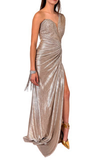 Waves Gold Shimmer One-Shoulder Party Dress for an effortlessly chic silhouette Sculpted detailing that accentuates your curves Full-length hem for a dramatic, floor-sweeping effect Partially lined The slim-fit silhouette is designed to flatter, with a concealed zip fastening ensuring a seamless finish. Color: Gleaming gold Material: Polyester Have Questions about us, read our FAQ