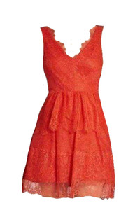A bright and lacy look for a distinctive statement piece that exudes timeless femininity and charm. V-neck. Sleeveless. Scalloped-lace trim at neckline. Ruching at center bodice. Tiered lace construction. Concealed center back zipper with hook-and-eye closure. Lace: Nylon. Mesh: Nylon. Jersey: Polyester, Spandex. Machine Wash.