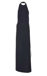 Sleeveless long dress featuring halter neck with rear button fastening Front fringes detail Waist brass drawstring Front vent Uncovered back Concealed rear zip fastening. Metal applications Tube dress crêpe: 100% Polyester Details: 100% Brass