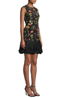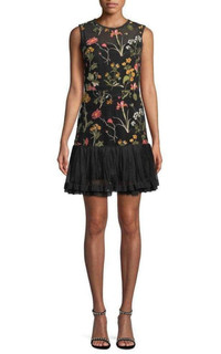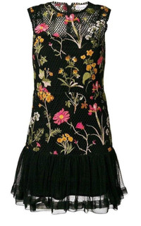 Black cotton floral embroidered mini dress Round neck Sleeveless design Back zip fastening Short length. Colour: Black Composition: cotton 100% polyester 100% Made in Italy