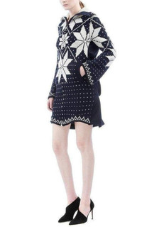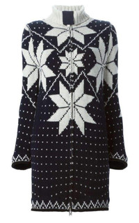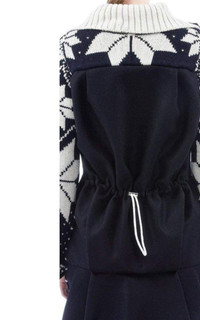 Dark blue and white wool jacquard long cardigan from Sacai. Composition1: Wool 80%, Nylon 20% Composition 2: Wool 100% Lining: Cupro 100% Dry Clean Only True to size Made in Japan