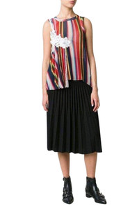 Multicolour cotton blend striped pleated camisole tank top from Sacai featuring a round neck, a sleeveless design, an uneven length, a lace detail, a rear keyhole detail, a back button fastening, an exposed camisole design and an asymmetric strap detail. Composition: Cotton 70% Composition: Polyester 100% , Nylon 30% Made in Japan