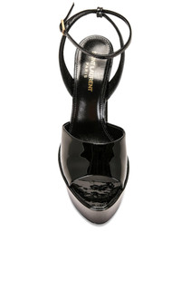 Jodie sandals by Saint Laurent crafted entirely of patent leather with a wide heel and platform. Ankle strap closure with buckle Open almond toe Wide covered heel Leather sole; Painted finish Heel height 6"/ 14.5 cm Platform height: 2"/ 5cm 100% Calf leather Leather lining and footbed Glossy leather upper with leather sole Made in Italy