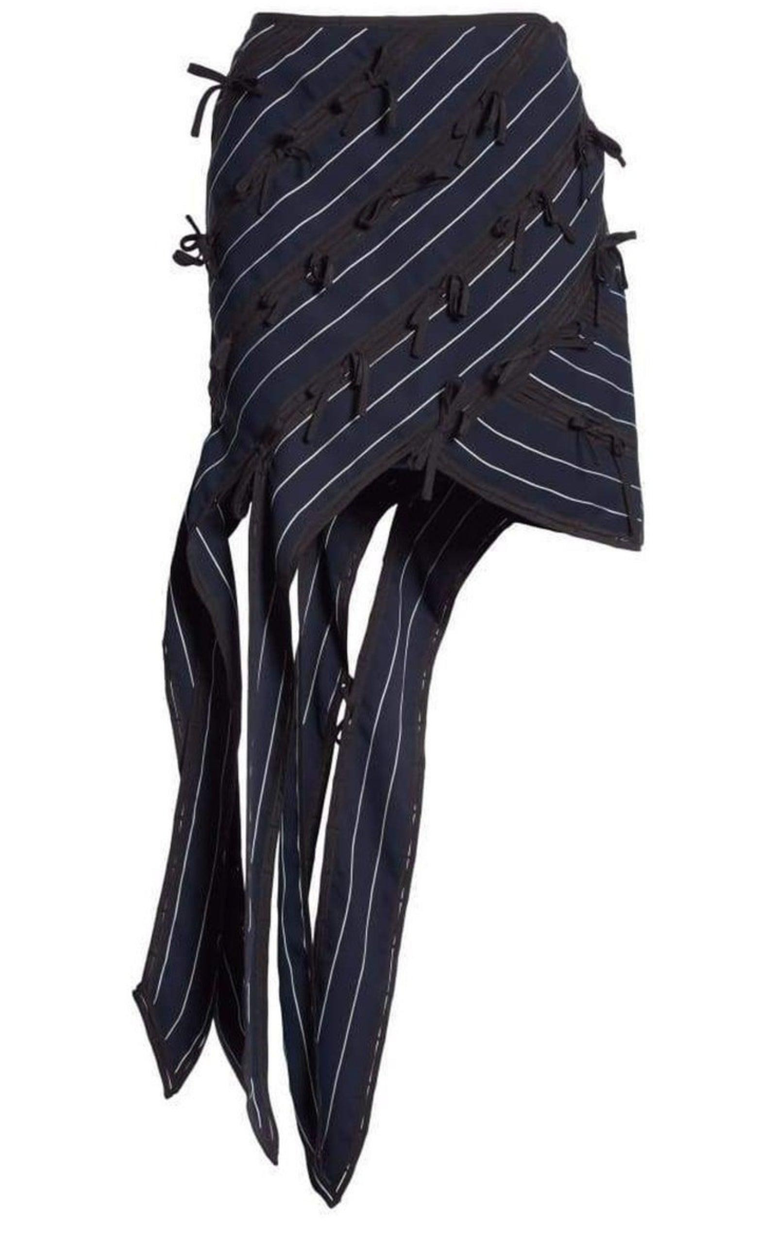 Pinstripe Ribbon Asymmetric Panelled Mini Skirt
