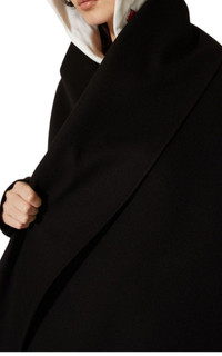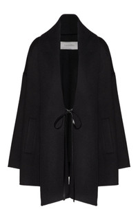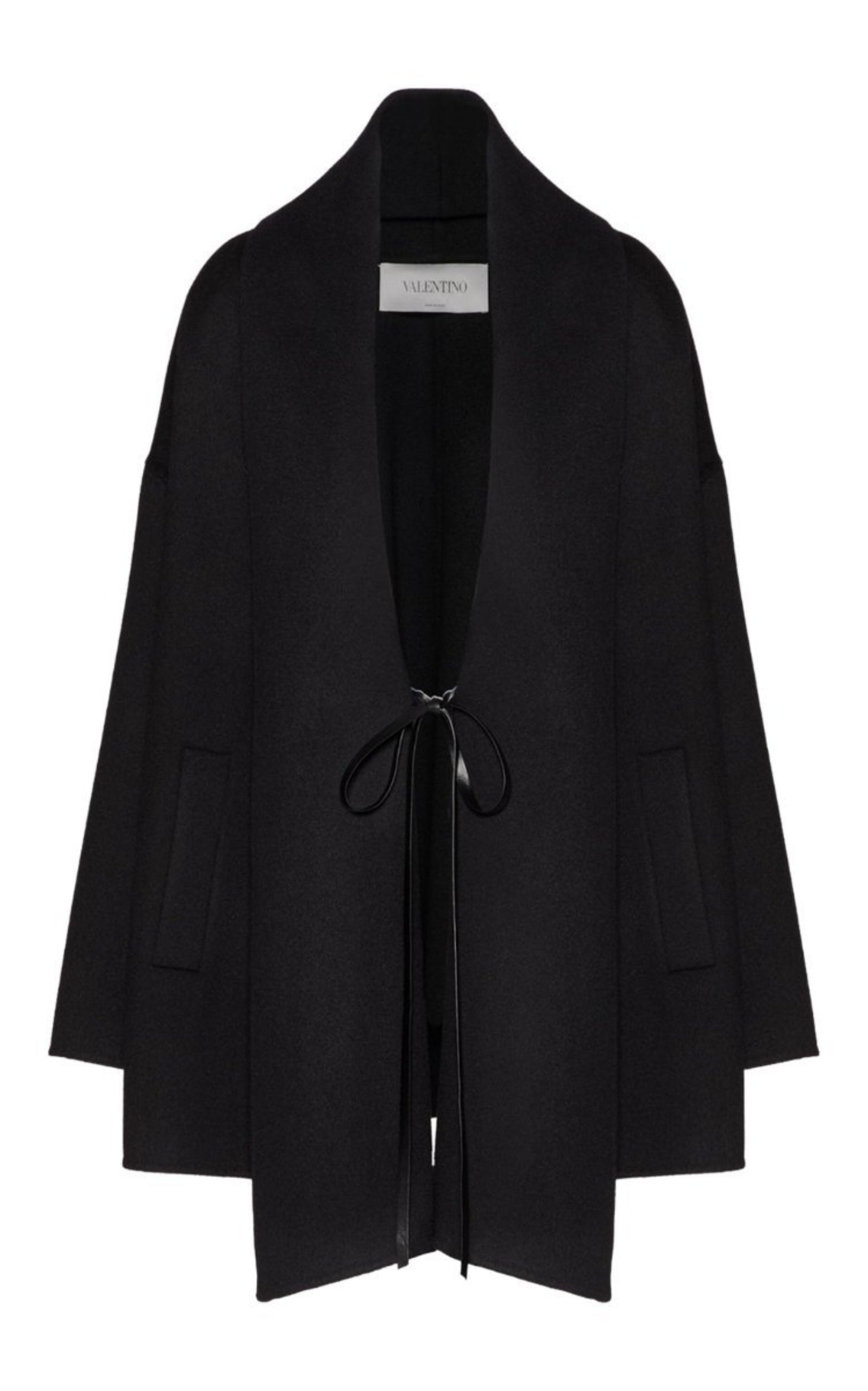 Designed to make transitioning between the seasons an easy undertaking, this Valentino cape coat is perfect for layering over sweaters during winter and over fanciful T-shirts when the weather begins to warm up. Find comfort in the piece’s gentle wool-cashmere foundation and look to the sleek leather ties for a luxe finishing touch. Kimono sleeves Tie fastening Composition: 95% Virgin Wool, 5% Cashmere Trims: 100% Leather Dry clean Made in Italy