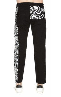 Stretch fitting jeans Fifth pockets Concealed button fastening Belt loops Embellished with printed fabric on sides. Fabric1:97% Cotton * 3% Elastane Fabric 2: 100% cotton Made in Italy Size 30 Waist 31" Front rise: 11.5" Inseam 29.5"